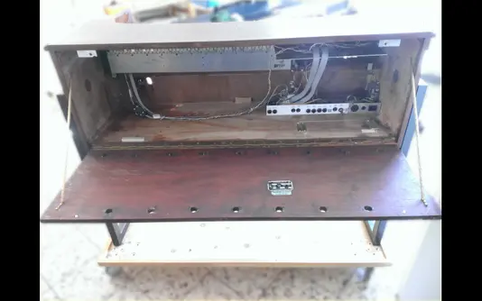 Hammond M3 - Es kam ein ausgehöhlter, vom Unterteil getrennter Spieltisch.